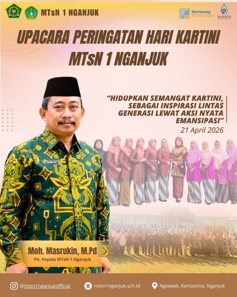 Nganjuk 21/04), Peringatan Hari Kartini tidak hanya menjadi ajang seremonial tahunan di MTsN 1 Nganjuk. Lebih dari itu, peringatan yang dilaksanakan pada Senin, 21 April 2025, menjadi momentum penting untuk merefleksikan perjuangan Raden Ajeng Kartini sekaligus membangkitkan semangat siswa, khususnya siswi, dalam mengukir prestasi dan meneruskan perjuangan Kartini dalam konteks kekinian.